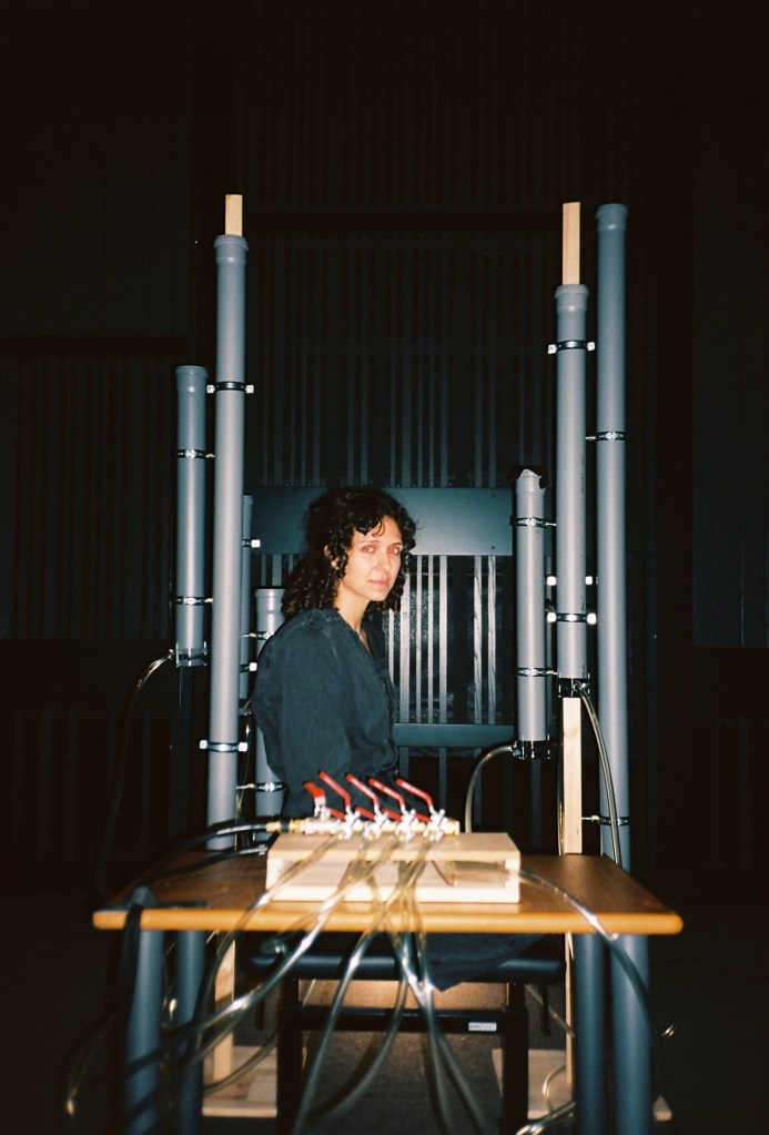 Amina Hocine (b.1991) is Swedish composer and sound artist based in Stockholm, holding a bachelor and masters in electroacoustic composition from the Royal College of music in Stockholm. She writes acousmatic, acoustic and notated music for musicians, focusing on longform pieces, exploring minimal harmonic movements and static rhythmic gestures. Her recent work has been centered around a self-made organ embodied from HVAC components, which produces mesmerizing drones with profound psychoacoustic effects which she calls her sound crystals. She views her instruments as an extension of her compositions into the physical world, each version of an instrument representing its own piece. Drawing inspiration from spiritual sciences, she weaves detailed timbres which encourages deep listening in her compositions. Her work has been presented extensively around Europe and lately wrote a commissioned piece for the INA GRM acousmonium.