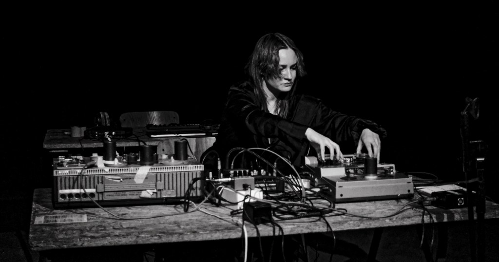 Augustė Vickunaitė is a sound experimentalist with a background in physics. She exclusively employs vintage reel-to-reel tape recorders to play, record, and create sounds, articulating diverse layers of recordings including found material, field recordings, voice, music instruments, objects, and the whole spectrum of malfunctions of decaying technology. Auguste specializes in tape music, noise, and collage music, known for her theatrical and darkly humorous approach, often exploiting errors of analog audio equipment. Her solo work encompasses tape loops and collages of found audio tapes.